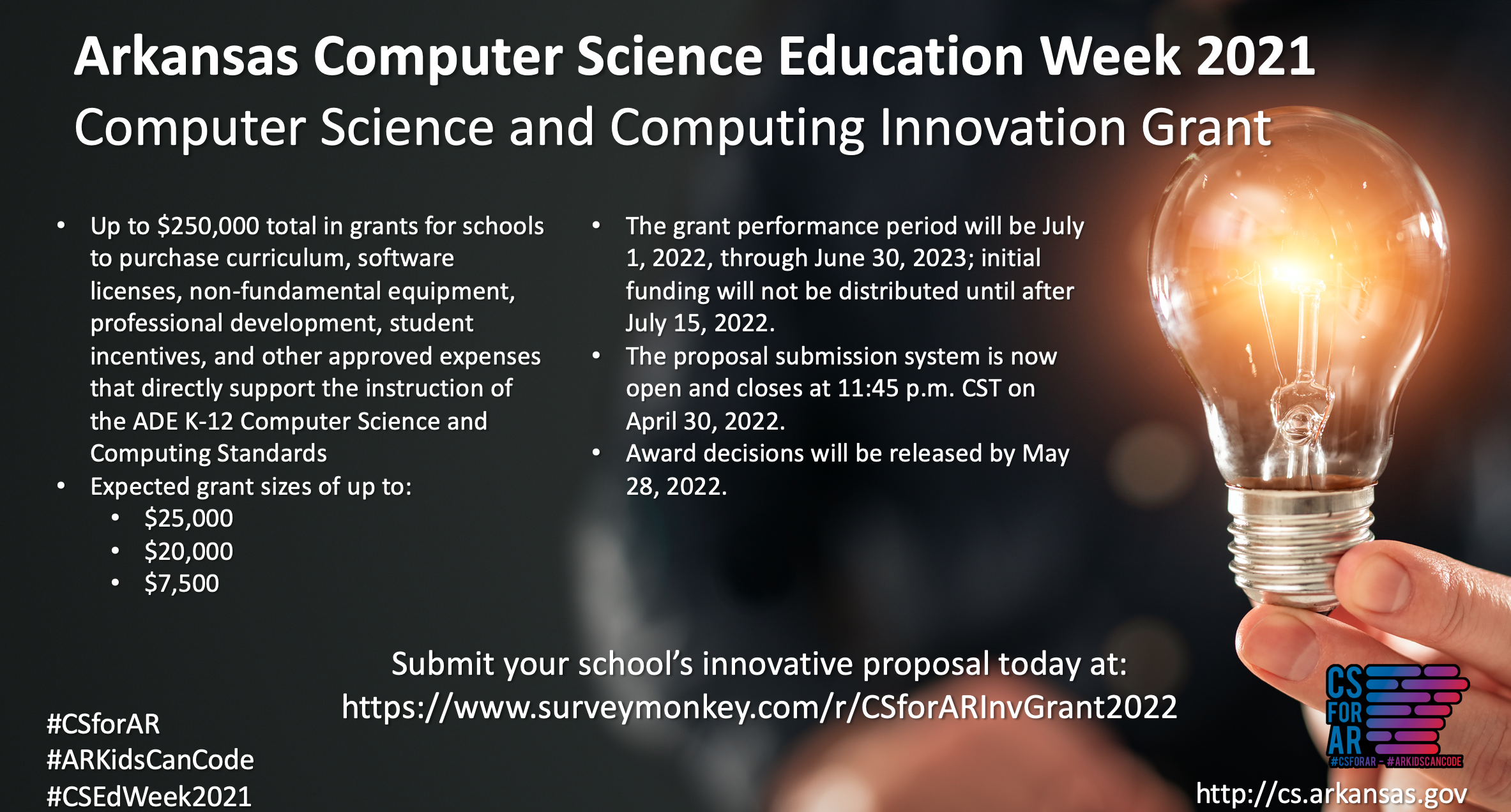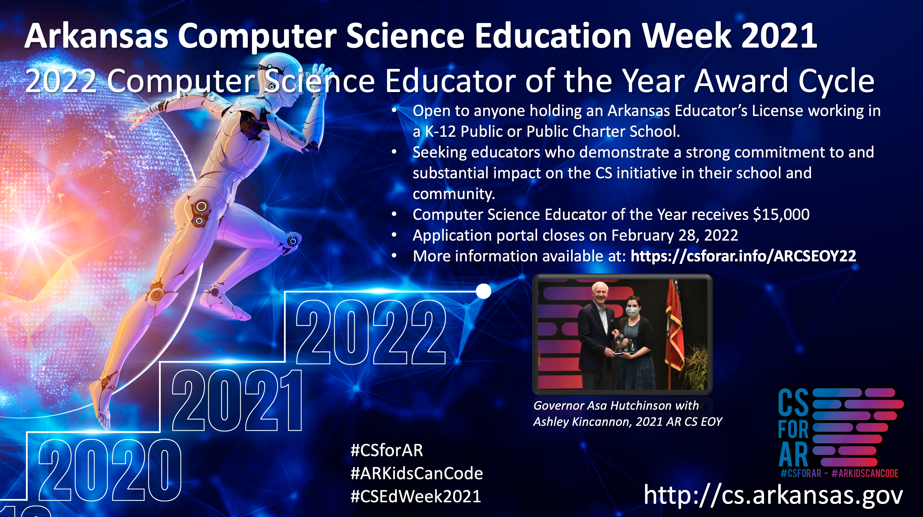 December 6-12, 2021 is Computer Science Education Week. This page features Arkansas's computer science announcements made during that week.