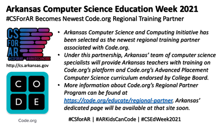 Monday, December 6, 2021 - Arkansas Becomes Newest Code.org Regional Training Partner